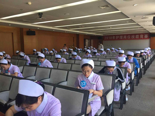 3月初,各院区、科室按照护理部统一部署,组织全体护理人员积极参加初赛、复赛的培训、选拔。在全院收治病人满负荷的情况下,护士们白天坚守岗位,晚上加班加点精心备战,护士长主动顶班,想方设法为大家争取训练时间,有的还“开小灶”手把手指导参赛选手,全院洋溢着浓厚的“比学赶超、争做能手”的学习氛围。经过层层选拔,50名优胜选手入围决赛,并于4月26日在培训中心进行最终角逐,医院党委书记郝银菊、副院长闫树英亲临现场指导观摩。决赛现场,选手们身着整洁的护士服,以饱满的精神状态有条不紊的进行着操作,汇报声音清亮有力,技能操作娴熟敏捷,沟通话语柔和悦耳。12名资深护理评委们一丝不苟,对参赛选手的每一个动作都严格认真地进行着评判……她们标准规范的操作、严谨负责的态度赢得了在场所有人的阵阵掌声。一周后举行的护理岗位技能竞赛理论决赛笔试,再次诠释了我院护理团队“求真求知”的学习态度和对南丁格尔救死扶伤的人道主义精神的崇敬之情。